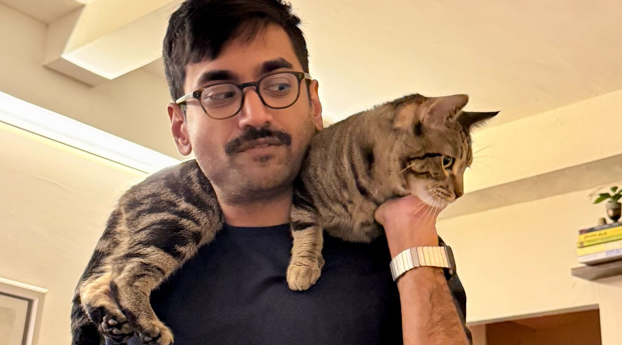 I got Sushi for Yas in January 2025, right before we decided to move in together. Within hours, this tiny gray-black-and-white fur baby imprinted on Yas, dubbed him “his person,” and that stinker hasn’t left his side since. They truly are inseparable. Sushi curls up on Yas’s lap while he works, follows him from room to room, meows at him when he’s decided Yas needs to wake up. Sushi’s favorite spot is on Yas’ shoulder, paws hanging over like the baby he is, and Yas just needs to carry him from room to room...just...like...that.